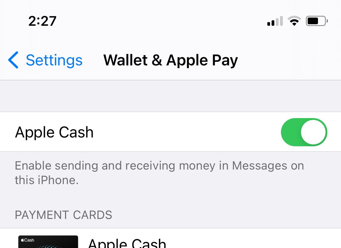 What does the top of your Settings > Wallet & Apple Pay look like in comparison to: