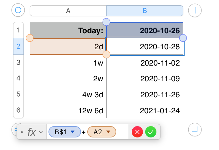 Cells in column A are the cells into which "2 weeks" would be typed. A