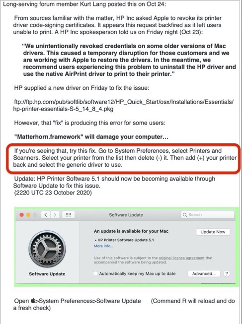 Had recently done a virus scan using Bitfender which found no problems. Then days later went to use hp app to do a wirless scan and following notice popped up .Did a second virus scan, still nothing so did a reload direct from apple store .still the same.