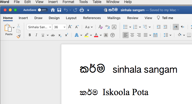 There are some bugs which I identified in Sinhala language unicode for Mac OS! It seems that I cannot type the following phrase in the correct order. This is in relation to the default font "Iskoola Pota". This is the automatic font which is selected when selecting the keyboard! The context of letters are lost in this font. For example typing in unicode the following letters ක - ර් - ම , this should be displayed as කර්ම . But instead, the default font displays this as - කමර් . This is very very annoying! And when viewing any document which has the font "Iskoola Pota" this issue is repeated and it becomes very difficult to comprehend! Is there a fix for this issue please?