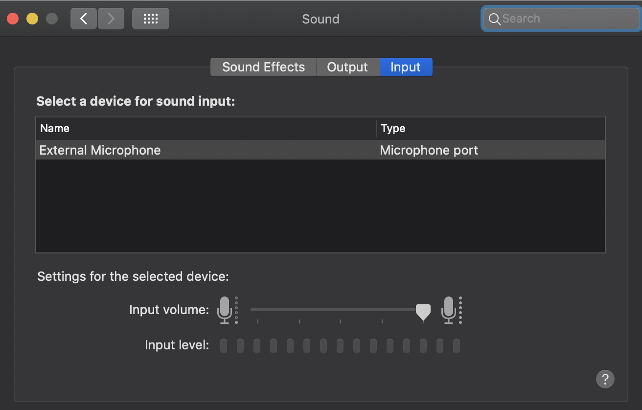 Change the sound input settings on Mac