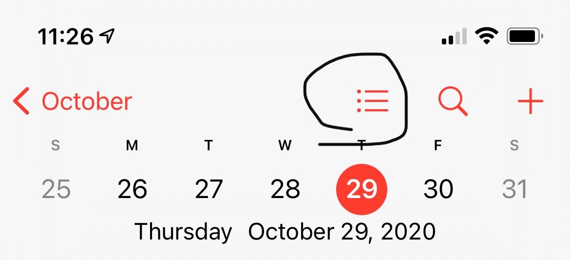 Where is list view in calendar iOS14.1?