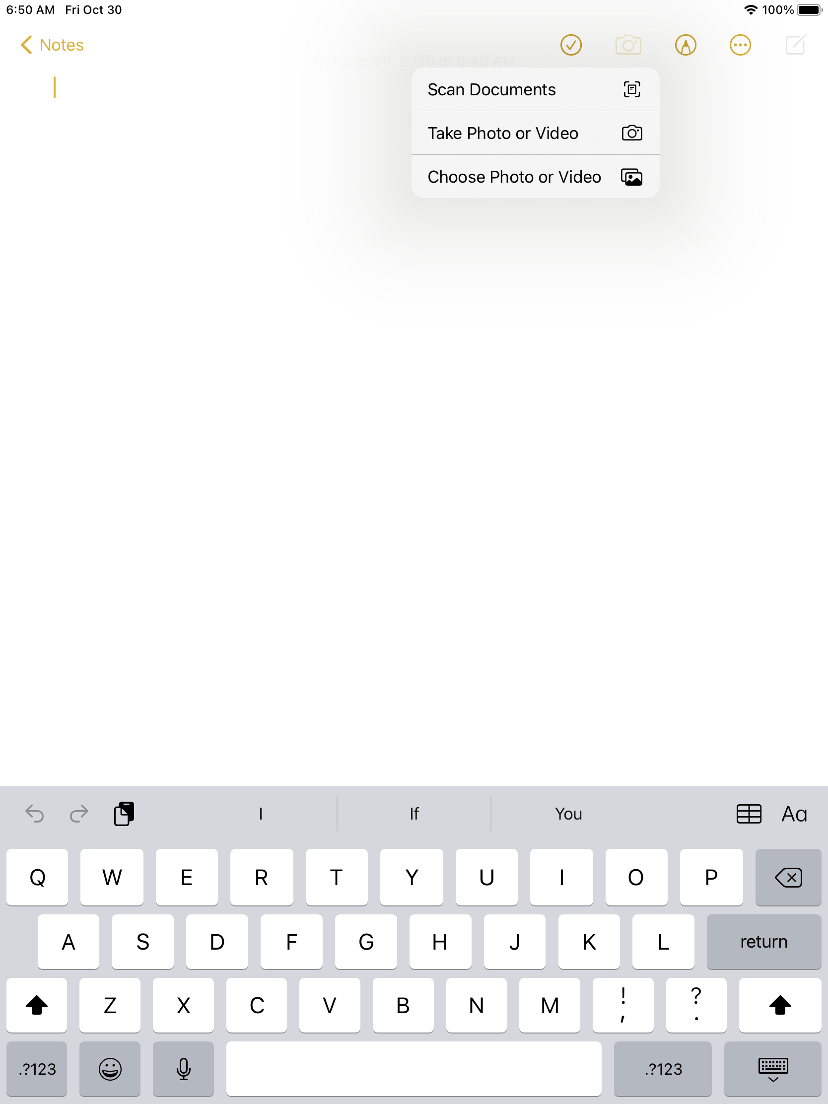 If you want to import a photo into a Note, tap on Choose Photo or Video to select a photo from the camera roll.