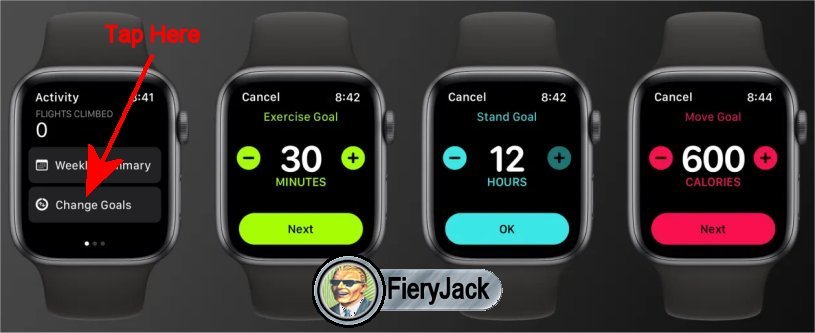 When I open the activity app on my watch there is no button that says "change goals"? The only time I have ever changed it was when I got a notification that I wasn't hitting my goal and I should probably lower it. However, I have recently become more active and have been consistently hitting all three goals and would like to challenge myself.