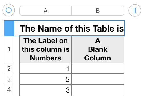 My Excel documents are Excel workbooks of baking recipes which, thankfully, Numbers can open. As I know it, the individual sheets are called spreadsheets; not Tables and in using Numbers I am attempting to use a new sheet as an Excel spreadsheet. I've resisted using Tables parting due to the fill in row 1 and column A. Yes, I can make a template and that may be no big deal; but it would then be a Table. I can see the advantages of Tables , but don't want to make a mess of the hundreds of sheets in my Recipe workbook.
