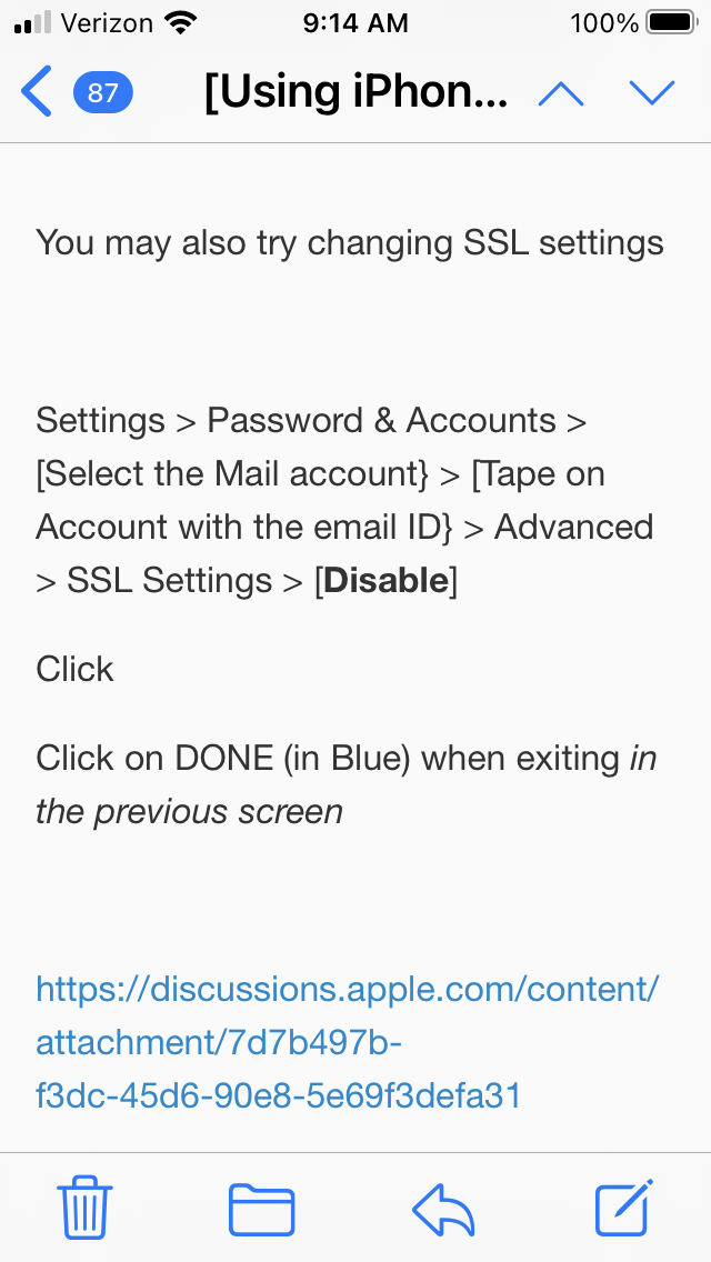 I’m getting constant popups that say Cannot verify server identity. The identity of imap-mail outlook.com cannot be identified. I have tried rebooting my phone . I also deleted my yahoo and hotmail snd iCloud Accts and then added them again. Nothing has worked. Can anyone help me solve this issue? I’m unable to use my phone because it pops up so frequently. Thanks so much! I have the iPhone SE.