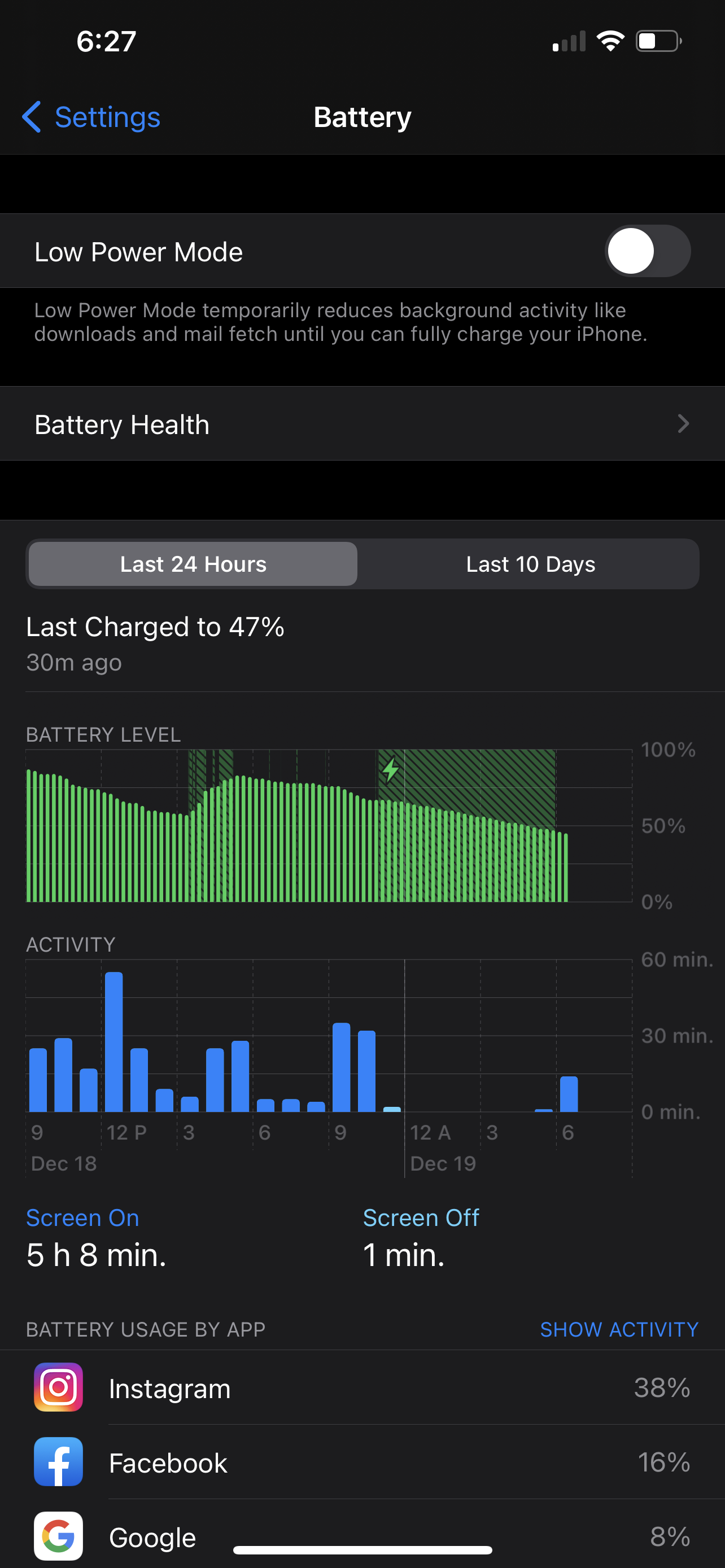 Battery drops around 10% over the same time frame (Better, but still not satisfying)