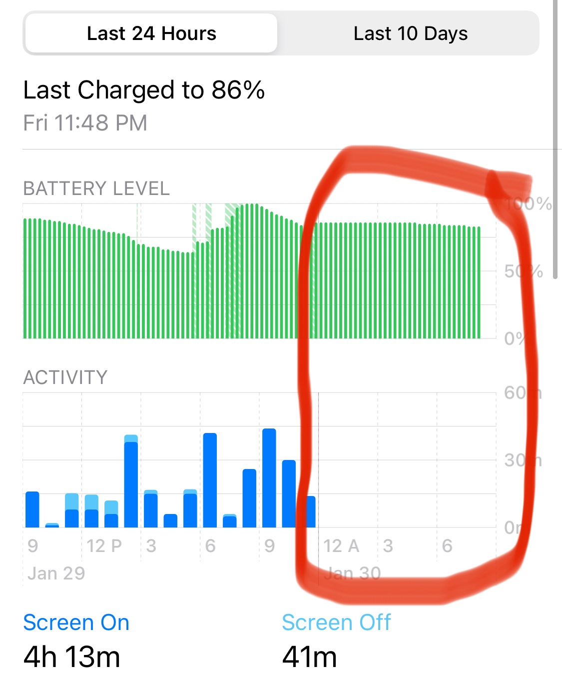 My iphone 12 is just 2 days old and I am facing really bad battery drain overnight. I had almost 90% left for couple of days before I had gone to sleep and woke up with a remaining battery of around 65%. The battery chart has nothing for these hours. And moreover my mail push is set to manual and I had turned off wifi, bluetooth, location and mobile data. Is there something I can do to stop this?