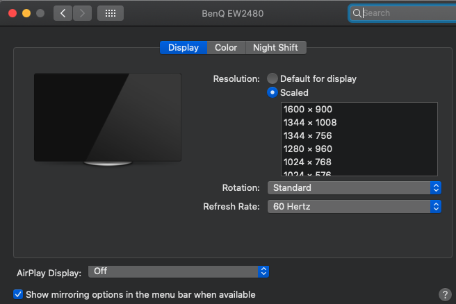 I used BenQ EW2480 (21:9, 1080p) for the external monitor of my MacBook air, mid 2013model.