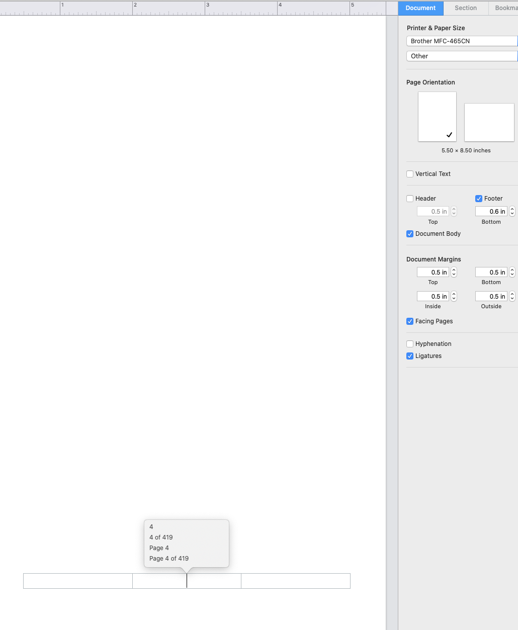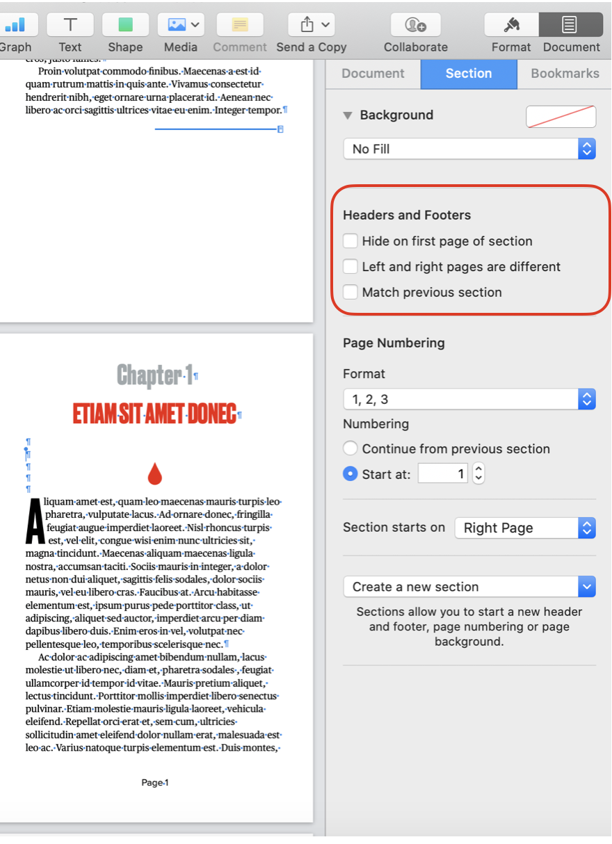 Page numbers in Pages Book template