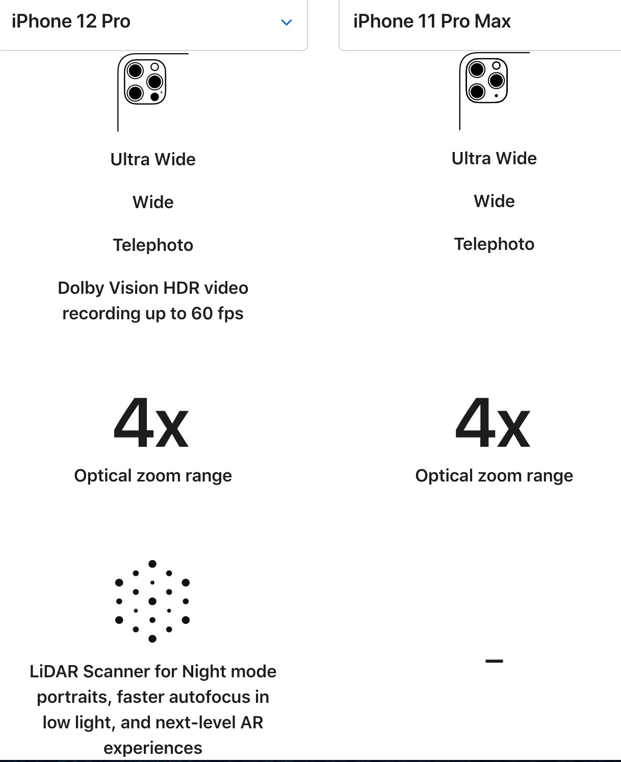Camera differences in iphone 12 pro vs 11 Pro Max?