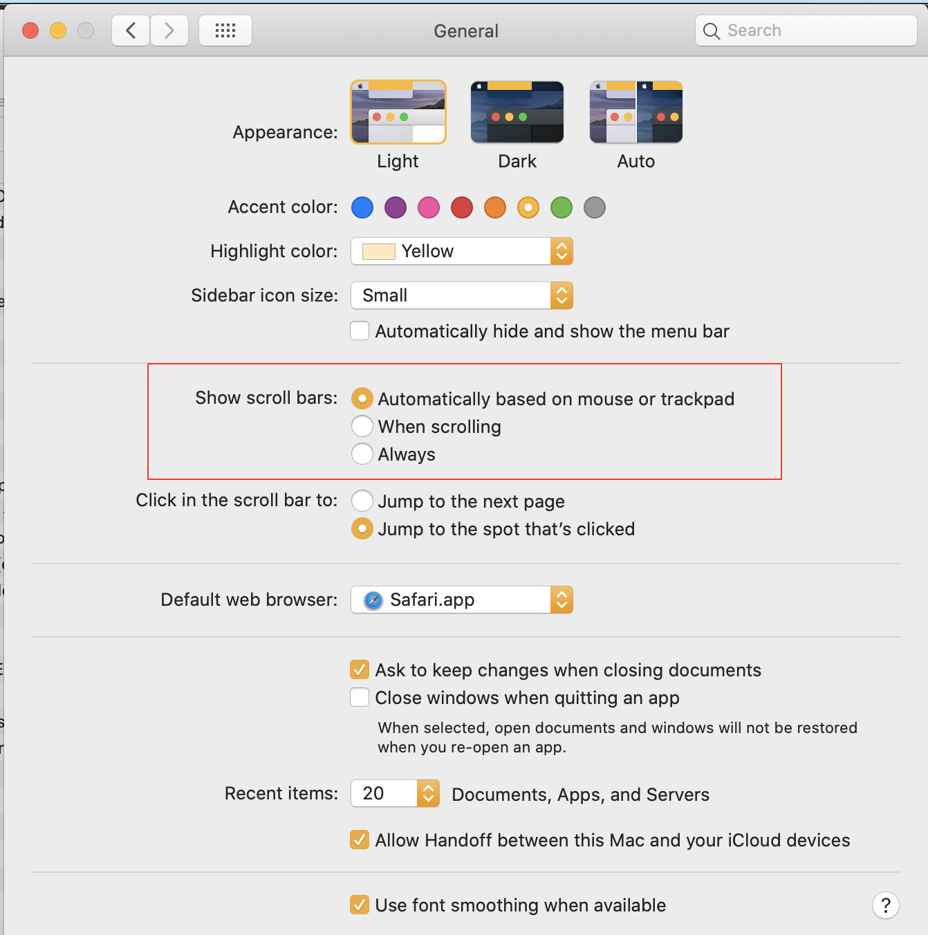 How do I ensure the scrollbars always stay visible?