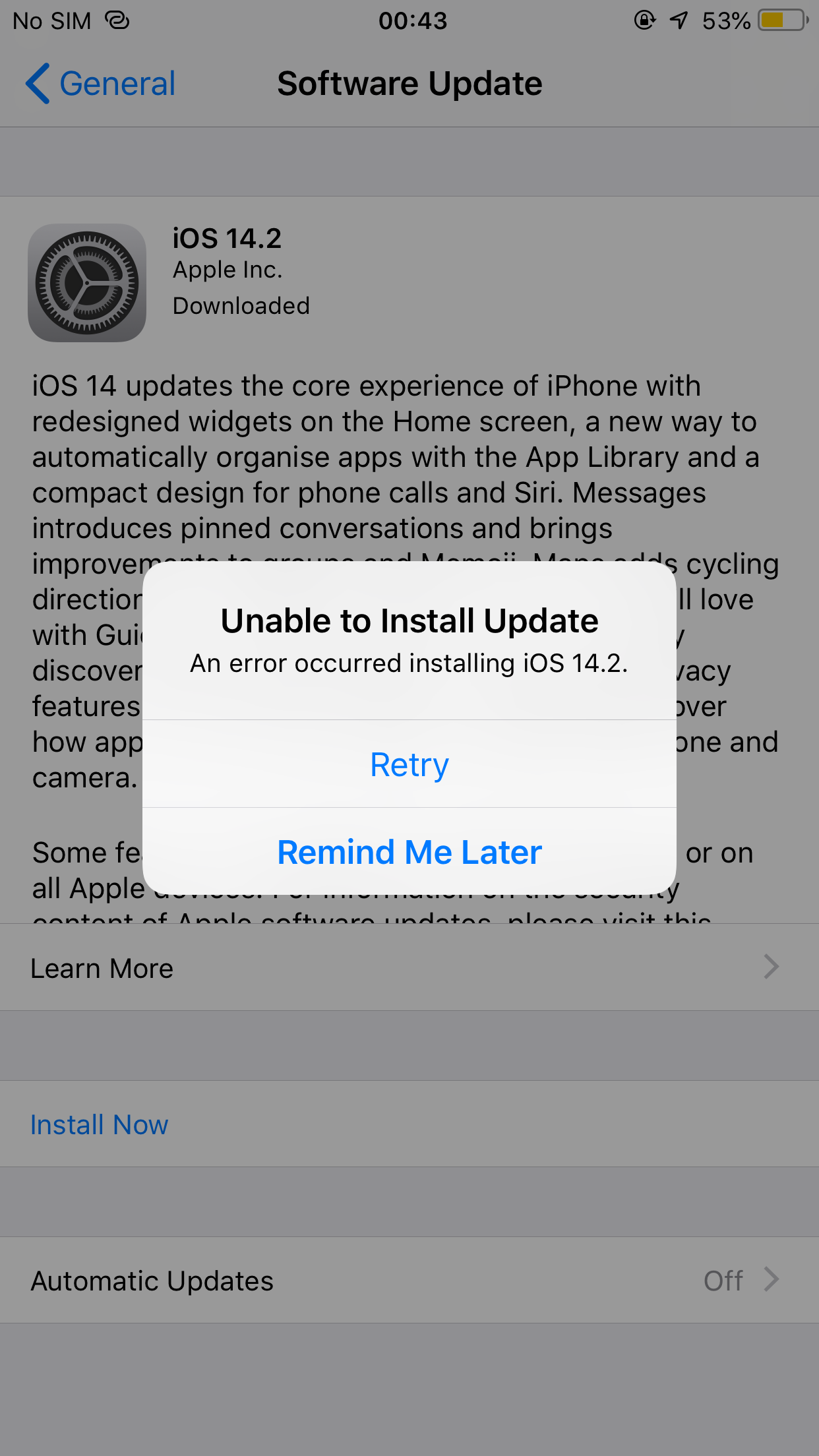 an error occurred installing ios14.2
