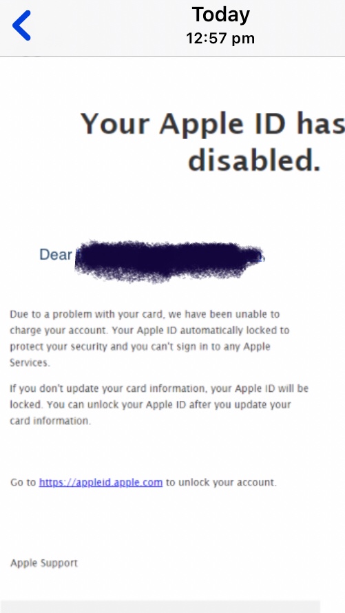 Hi I received several emails from “Apple” warning me my Credit Card was going to expire. Then this