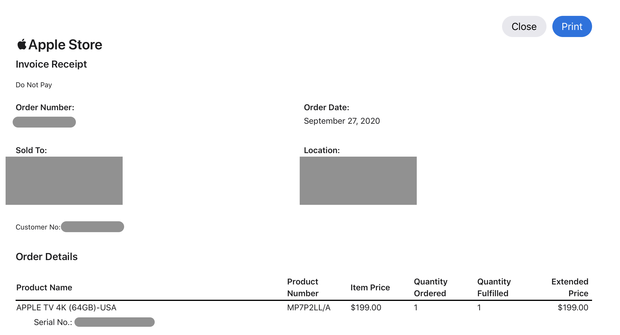 The 'Invoice Invoice" button is NOT shown on my order, maybe because it was partially delivered, i am still waiting for another items.