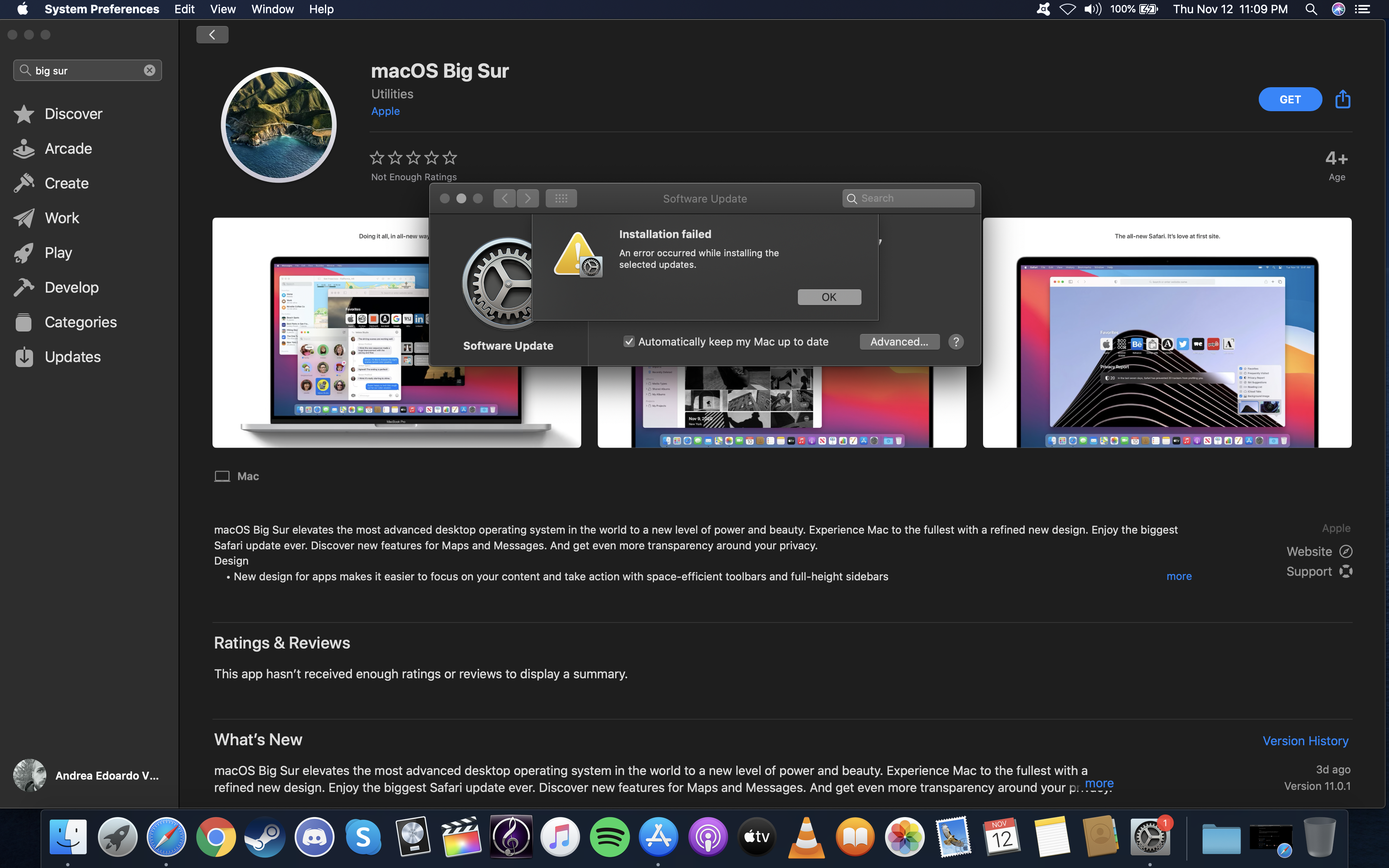 I have a bit of an annoying issue. So, I tried to download the Big Sur update on my MacBook Pro 15 inch, 2018, and it just says that the installation failed, with an error occurring while installing the selected update. Here a screenshot of the problem.