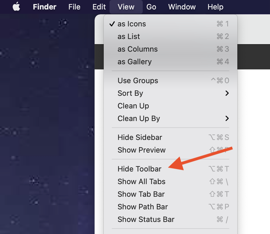 please note, mine says "hide toolbar" because it's open. yours should say "show toolbar" there.