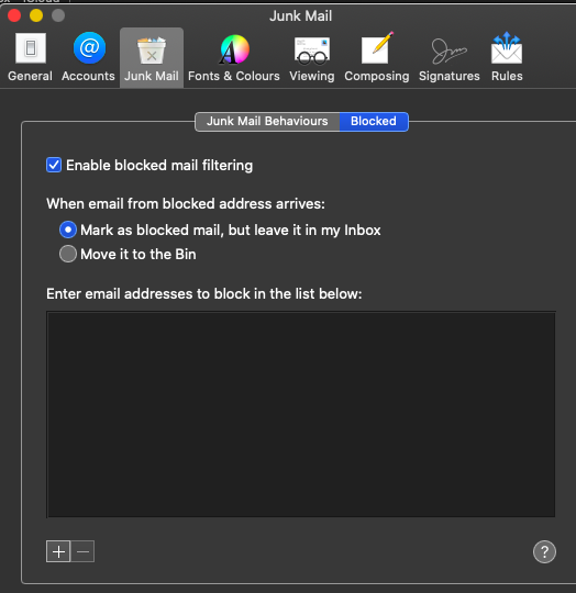 You can remove the mail address that are blocked select them and click on subtract sign https://support.apple.com/en-in/guide/mail/cpmlprefjunk/14.0/mac/11.0 in mail preferences of Mac application .