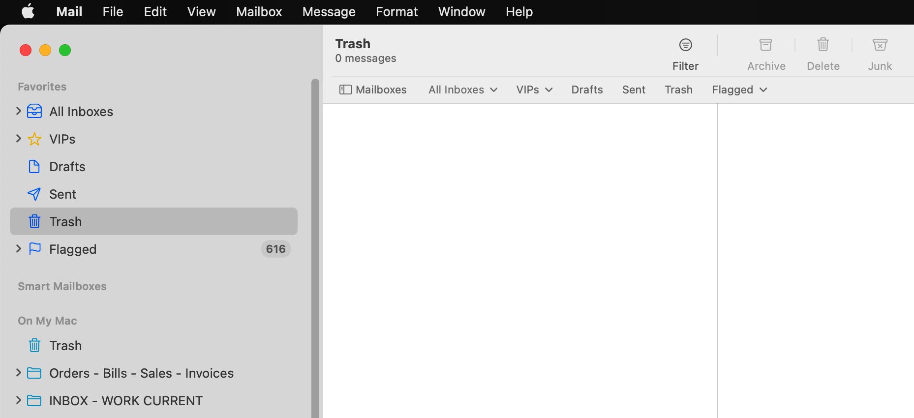 Trash Mailbox > On My Mac > All Trash