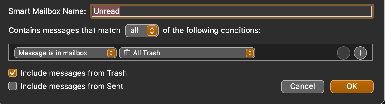 However I have multiple email accounts, and every time I delete something it keeps creating a new "trash" folder for that particular email account under "On My Mac". I have around 10 email accounts, and will eventually end up with 10 extra trash folders under "On My Mac". Anything I delete goes to the "favorites" trash folder (which is acting like a smart mailbox without me setting it up this way) but the individual trash folders under on my mac... can't figure out why there are there, or how to stop that. Any suggestions?
