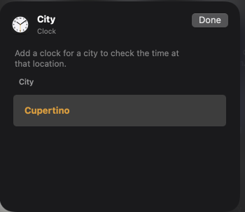 Not one of the solutions provided worked for me. I'm on Big Sur 11.6 and neither City clock nor World clock are editable. I two-finger-click on either widget and click on Edit clock. The widget turns and shows the cities in use. When I click on a city nothing happens. The widget becomes unclickable and the Done button in the upper right corner doesn't work either. I have to click outside of the widget to restore. Is this some kind of bug?