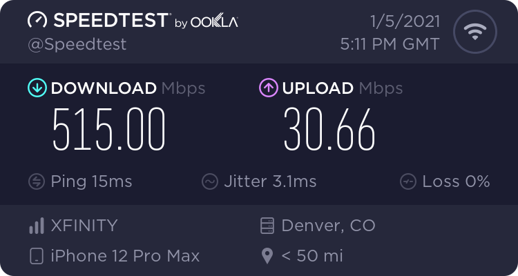 My 2 month old 12 Pro Max delivers 98mbps from the Xfinity 100mbps service connected to a WiFi router.