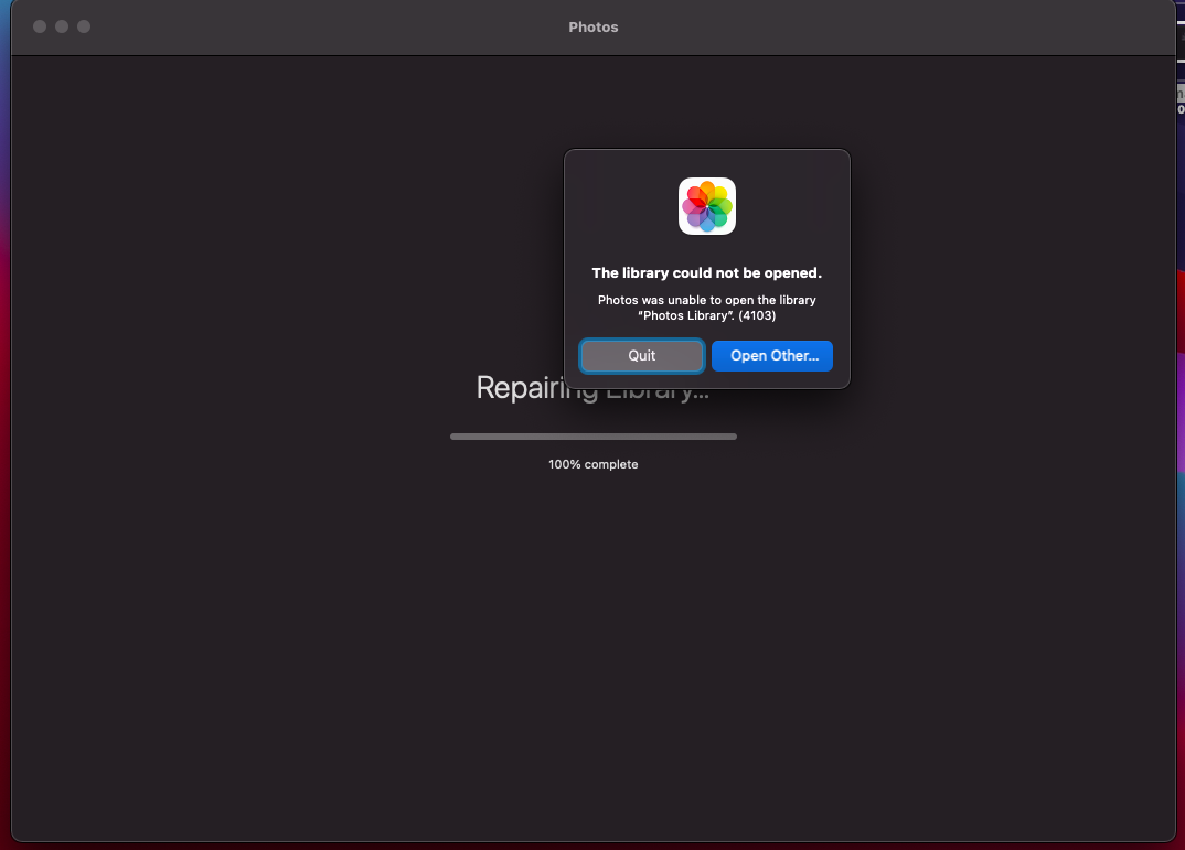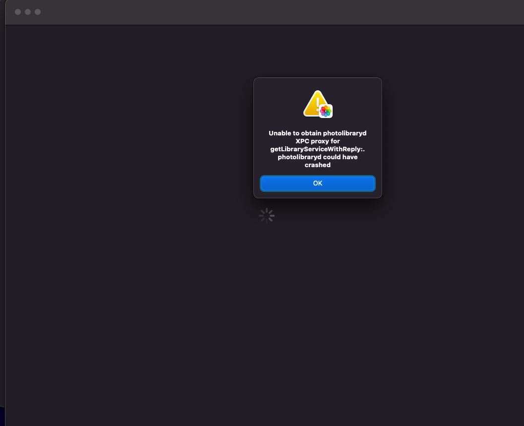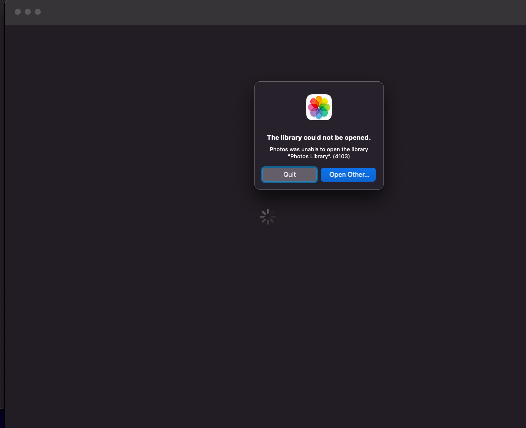 Anyway I launch photos and the message I get is " Photos was unable to open "Photos Library" "
