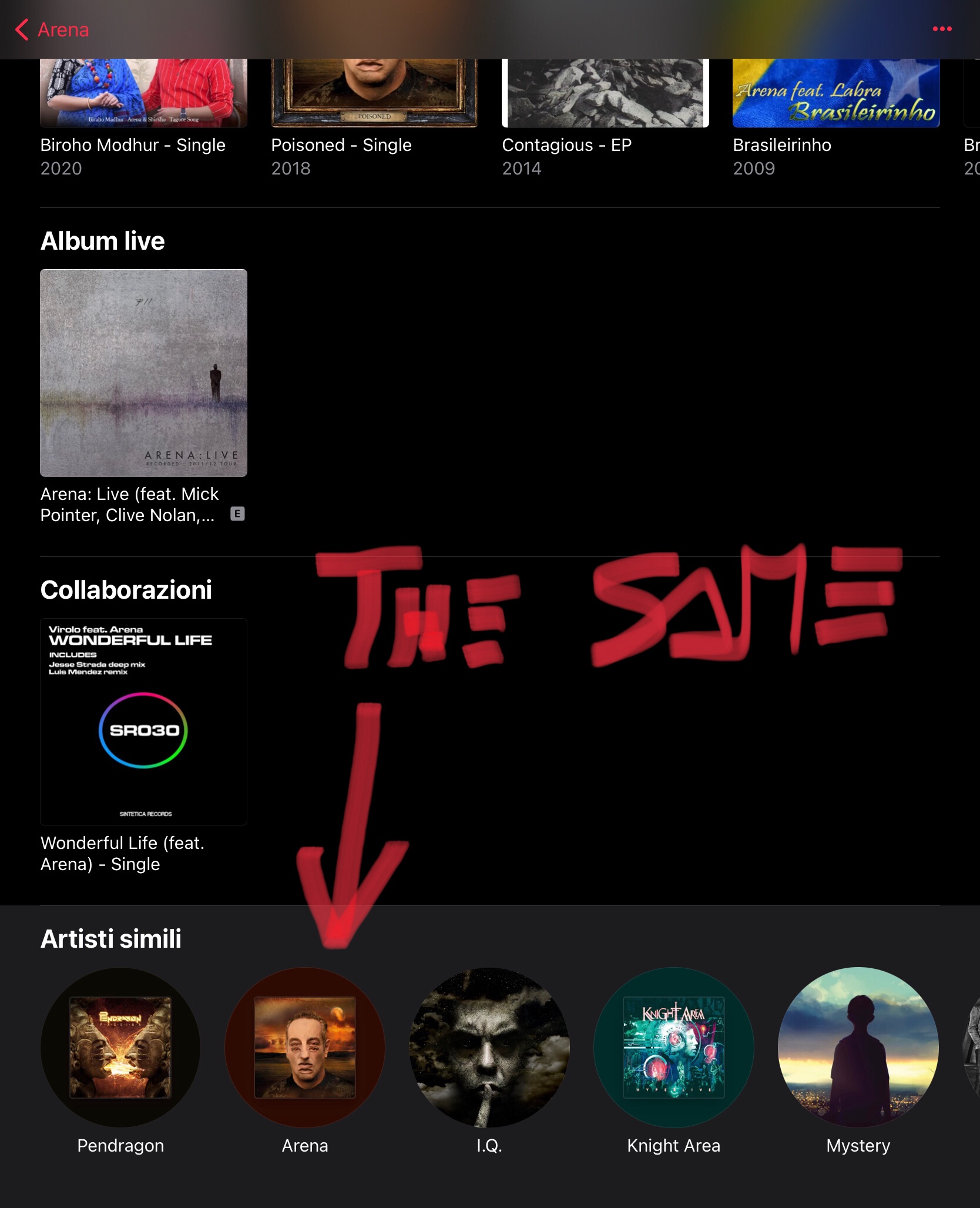 Hi. I've noticed there are some errors in the artist list. For example if we look for the English band Arena we will find the albums of the band mixed with those of other artists. Furthermore in the suggestions at the bottom of the page you'll find other band who calls Arena, but it is always the same band with the albums that lack in the first list. thanks.