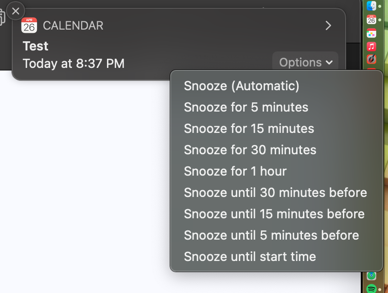 In Catalina, you could long-press the Snooze button and get a choice as to how long the notification was snoozed. I tried it in Big Sur and I don't get the list.