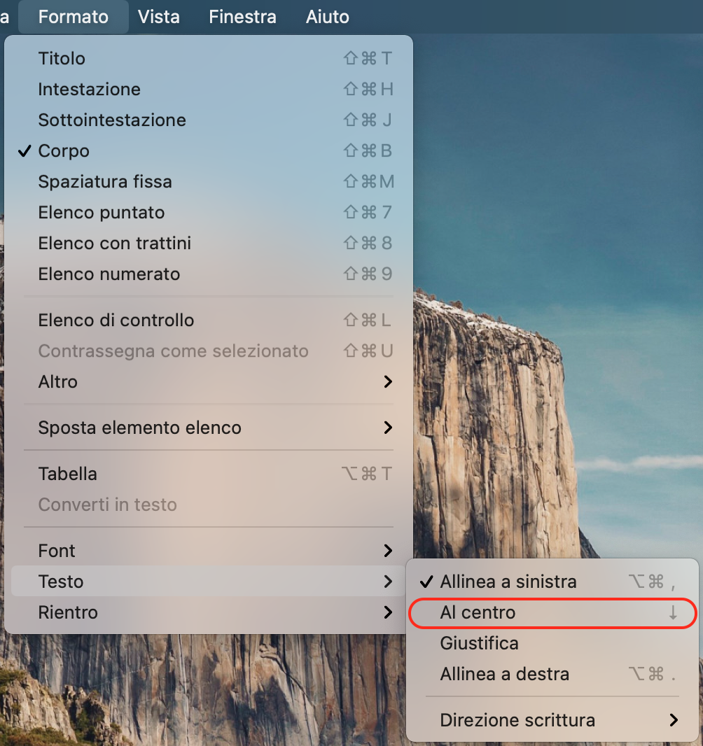The path in English I think it's Format > Text > To the center