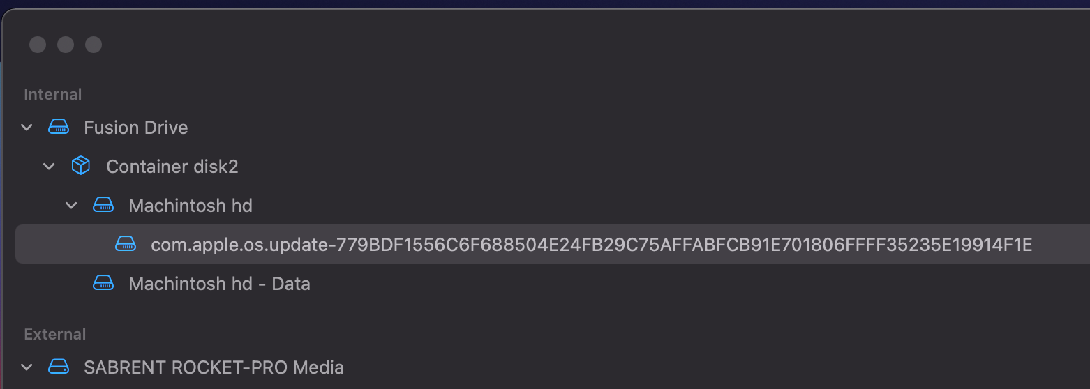 At installation time, the Big Sur installer takes additional steps to ensure that the System volume is extra secure. Once the correct system content is installed, the installer seals the System volume with a series of hashes and Apple signatures. It then creates a snapshot of the System volume - a perfect, signed copy that's frozen immediately, and protected from deletion. This snapshot's name always starts with "com.apple.os.update".