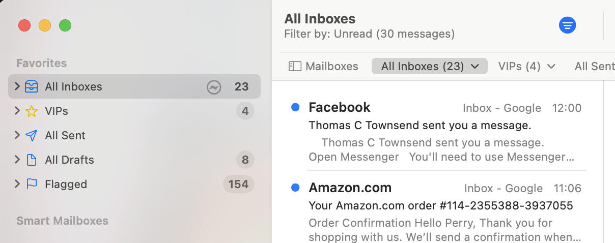 Another related question: there used to be a way to filter according to a range of options: unread/new, by sender, by date, by subject. Now, the only option is by "unread". The in-app documentation suggests these previous options should be there, listed in a checkbox format. But when I try to access them, they aren't there. Any idea how to get these options to show as the documentation suggests?