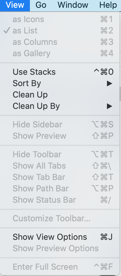 Catalina 10.15.7 Finder "Show Preview Options" grayed out
