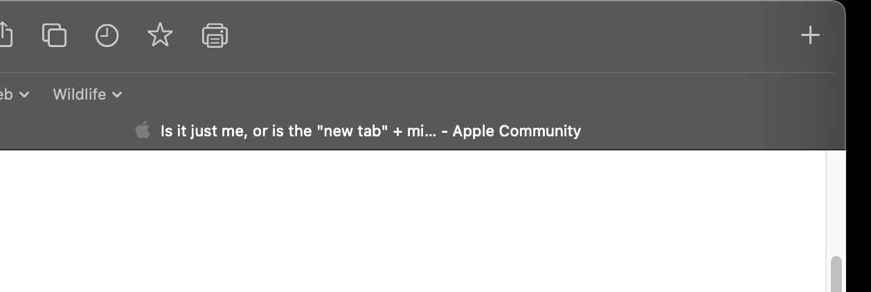 In previous versions of Safari, there was always a little + on the far right of all tabs, if you wanted a new tab you clicked the plus sign. Now, that plus sign is gone and the only way to open a new default tab is to use the command T or the File > New Tab option. I miss the + button )-: