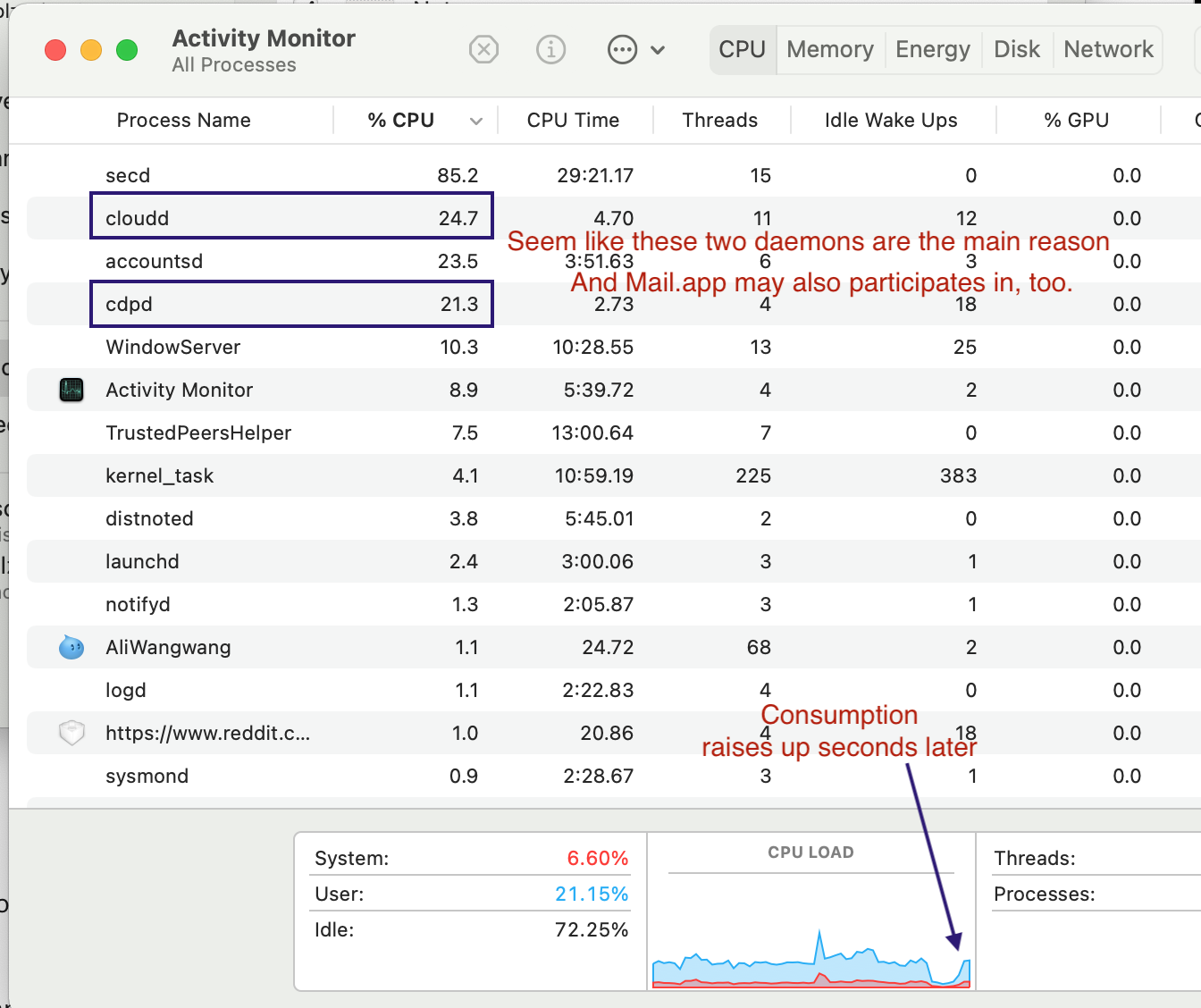 Big Sur keep consuming cpu(secd, cloudd, cdpd, Mail.app)