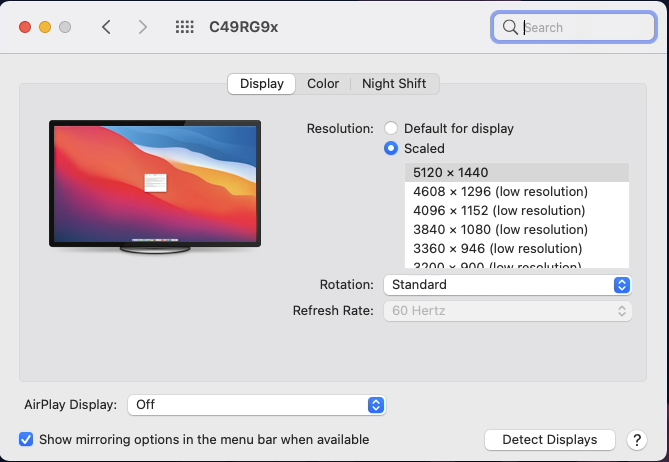 Why the resolution 5120x1440 Doesn't work with the New Apple M1 ...