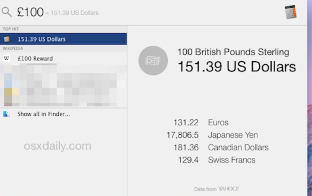 After upgrading to Big Sur, Spotlight currency converter looks different.
