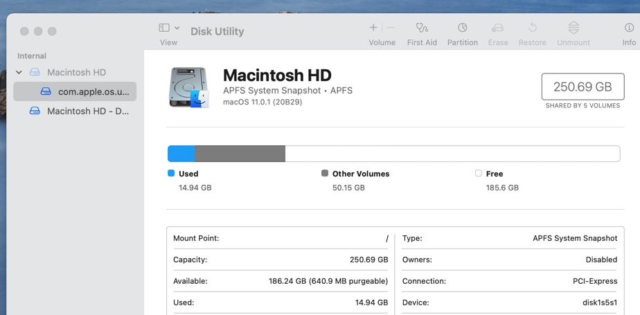 After updating to Big Sur with seemingly no issues, just want to know if this is normal. Two Macintosh HD are showing. If not normal, what should I do? Thanks.