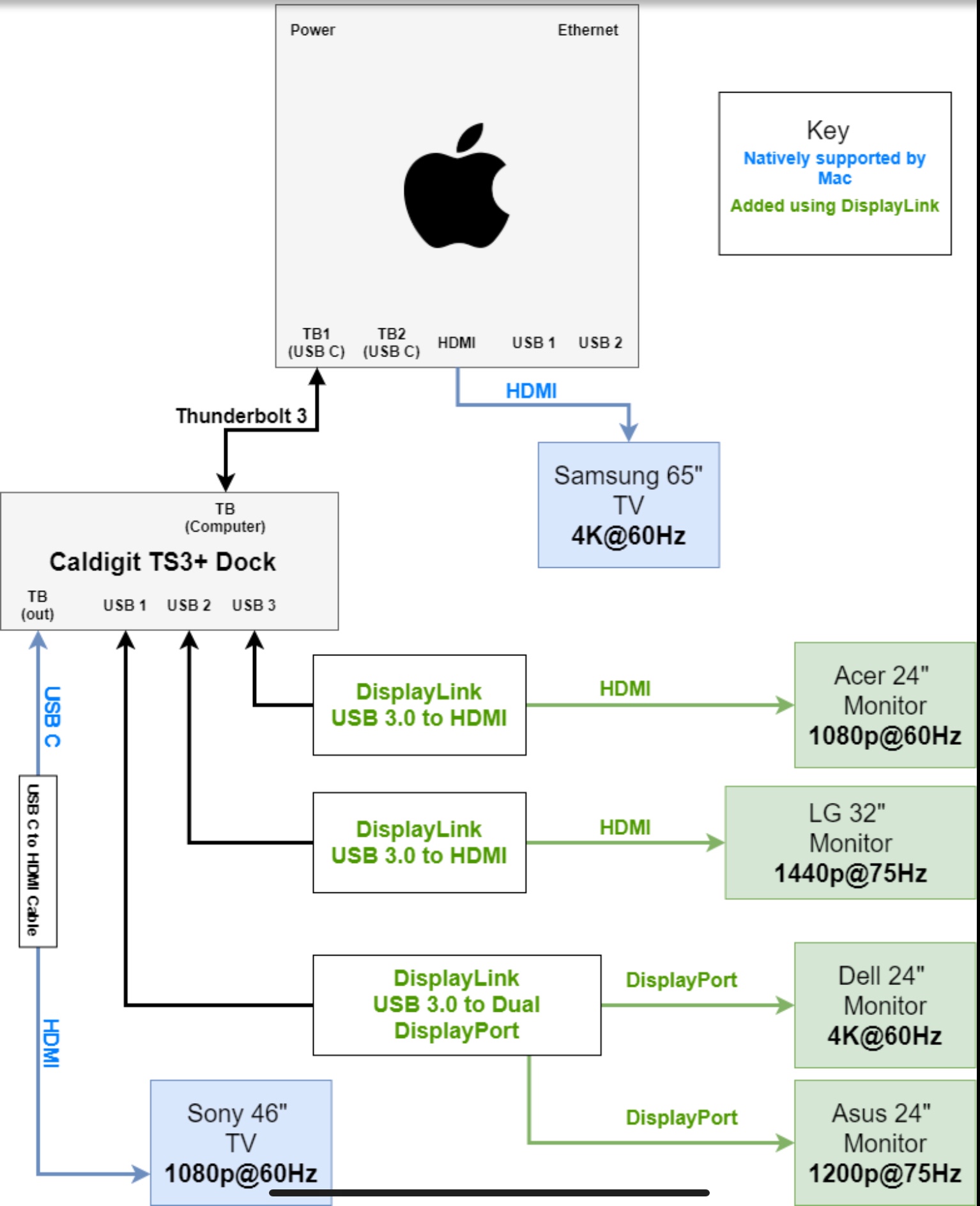 - OWC 14-Port Thunderbolt 3 Dock (it's the only dock that I know of that has the mini DisplayPort)