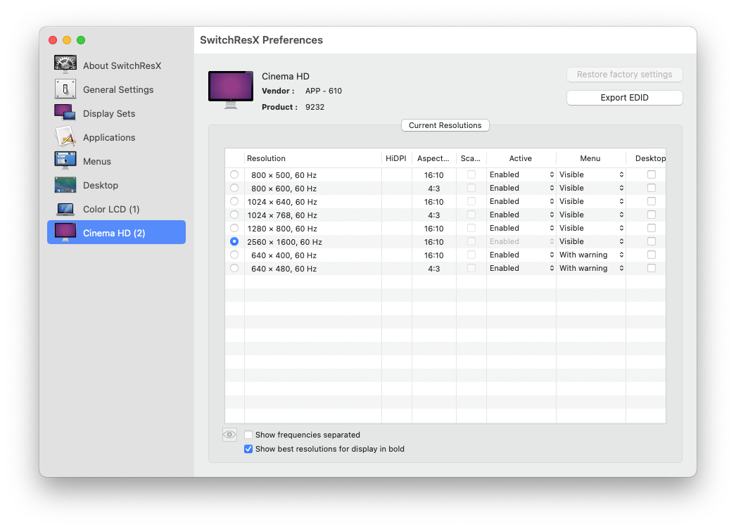 Connect OWC hub to your Mac. Connect ACD to the Mini DisplayPort cable and then plug it into the hub's mini Display port. To set the resolution to 2560x1600 you hold down the 'option key' when choosing Scaled in the Display preferences.