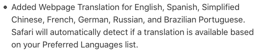 For example, when I visit lemonde.fr on my MacBook Air, I see the translation icon in the address bar and the translation itself is very good.