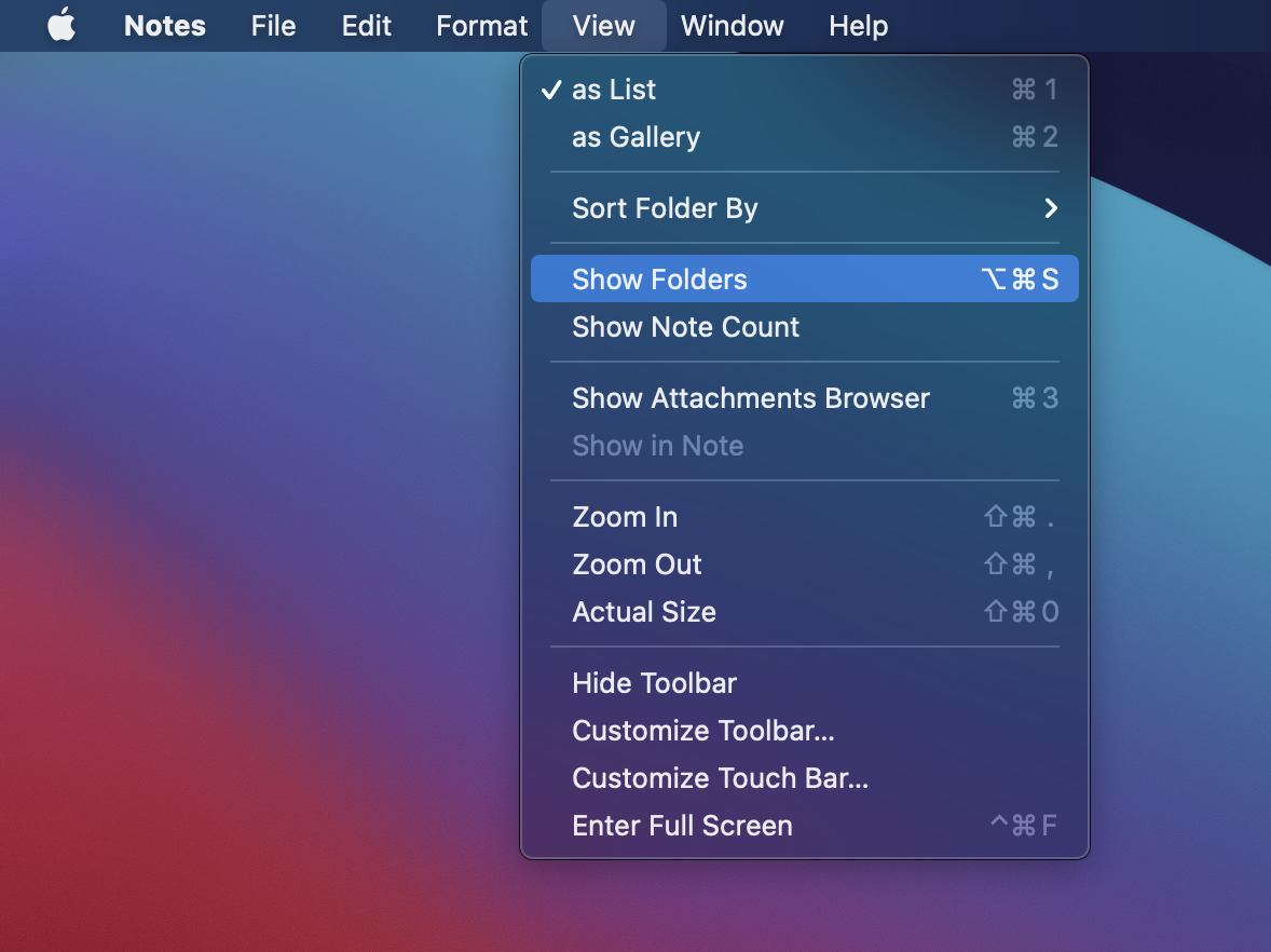 No sidebar on Notes on my iMac