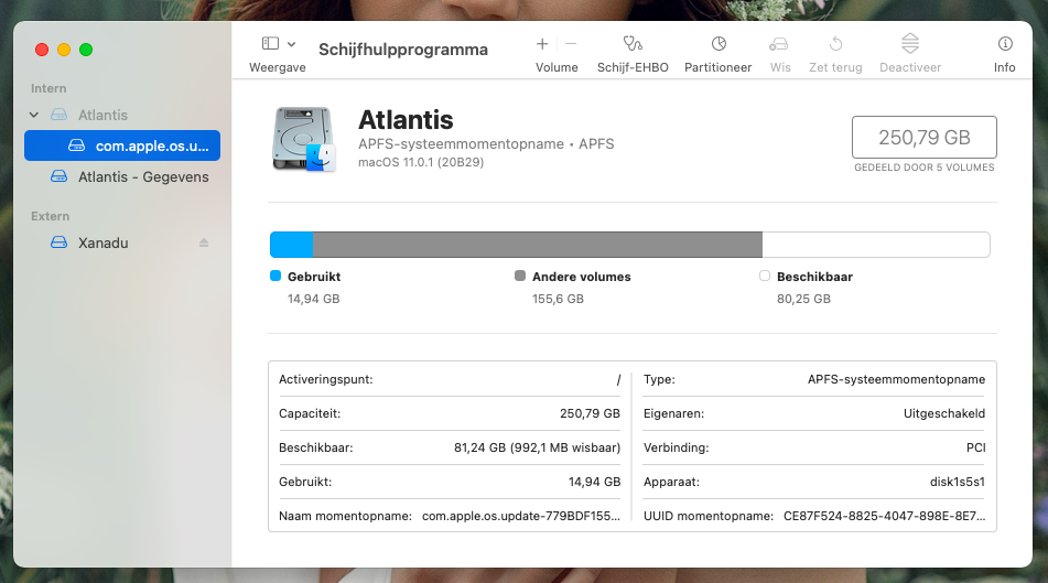 After upgrading to Big Sur and looking under Disk Utility my volumes are different.