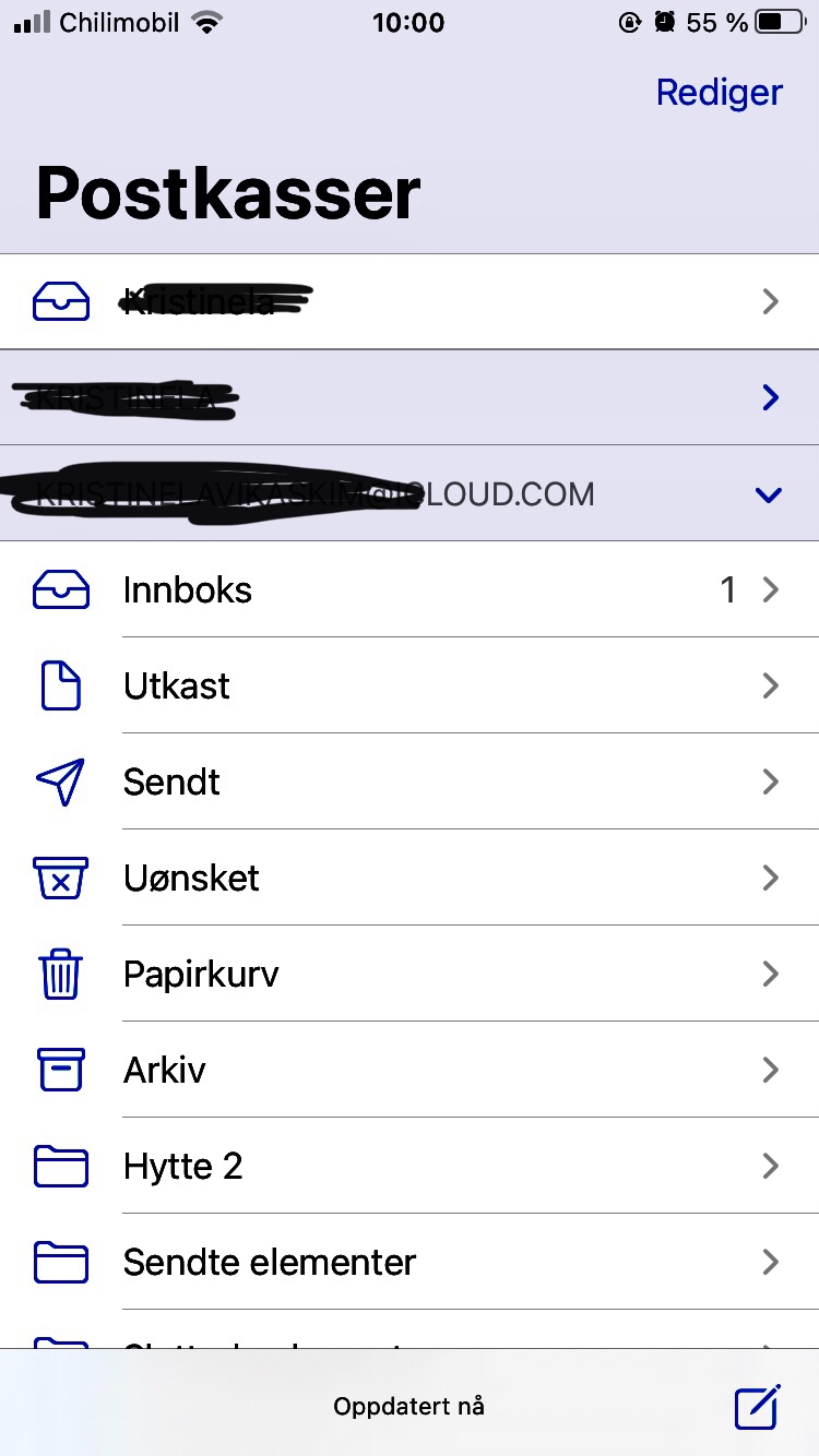 Hei! Takk for svar! Ikke i ICloud, på mailen som er koblet opp gjennom mail på innstillinger. Det er som en «Ghostmail». Plutselig står det at det er mail der, i neste øyeblikk er den ikke igjen.