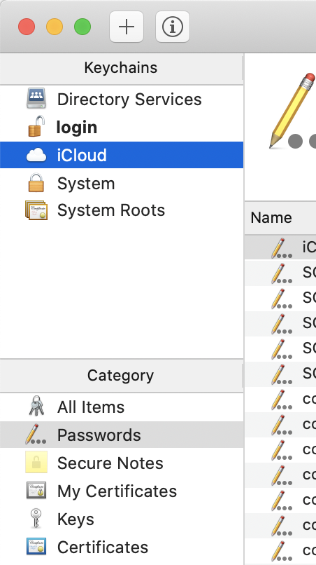 - I note that the UI of KeyChain Access is completely different and does not seem to have an 'iCloud' section. See screenshots.