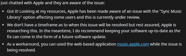 Apple Music Sync Error: 'Genius results can’t be updated right now. The network connection was lost.'