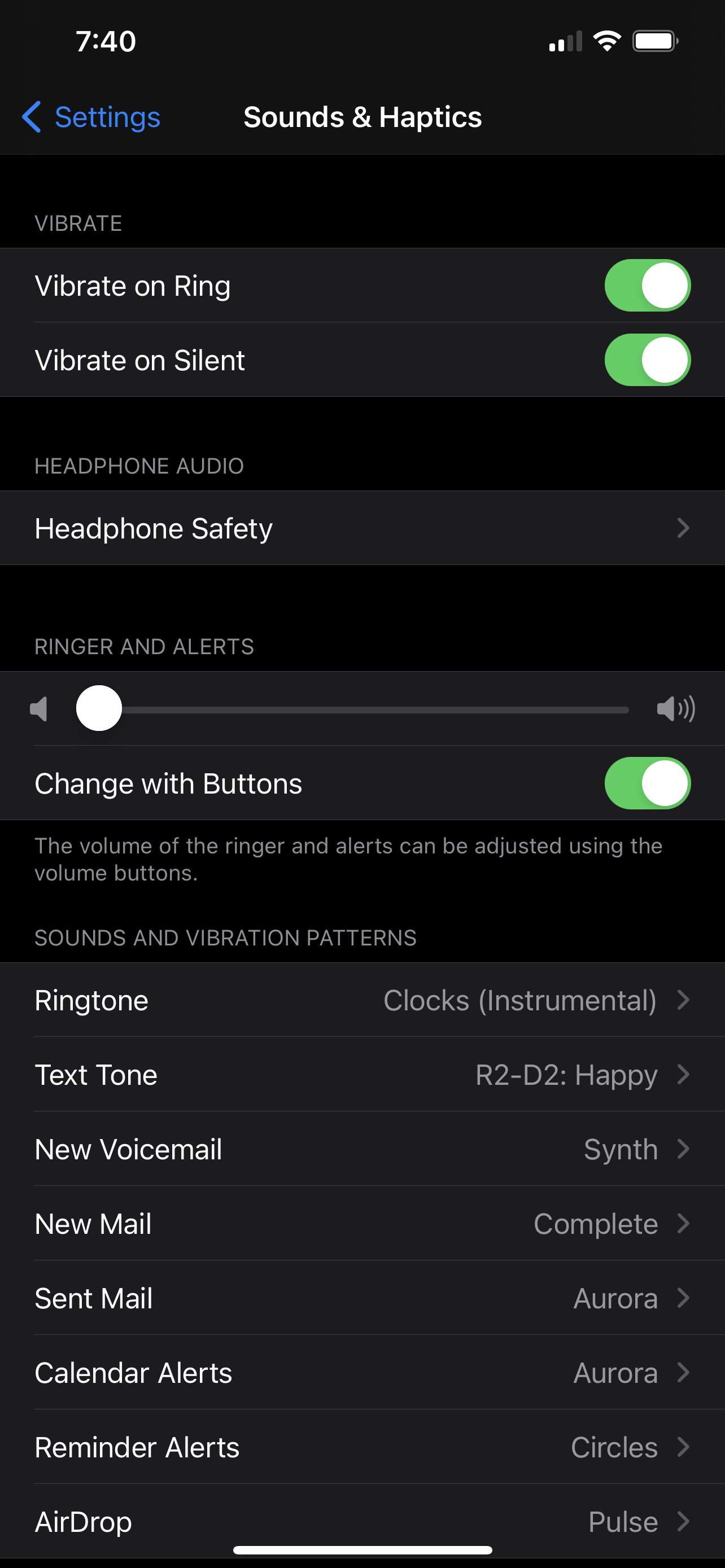 (My vibration was off, hence it didn’t matter if vibration was on in Sounds & Haptics)