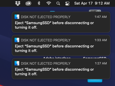 OK, I have been doing some experiments and have not had a disconnection for a couple days. It appears (for me at least) as the trigger for the "DID NOT EJECT PROPERLY" event is when the Mac goes to sleep. I suspect it may be a combination of factors which I have not deciphered yet, including 1) Sleeping, 2) HHD, 3) TimeMachineBackup, and possibly marginal hardware.