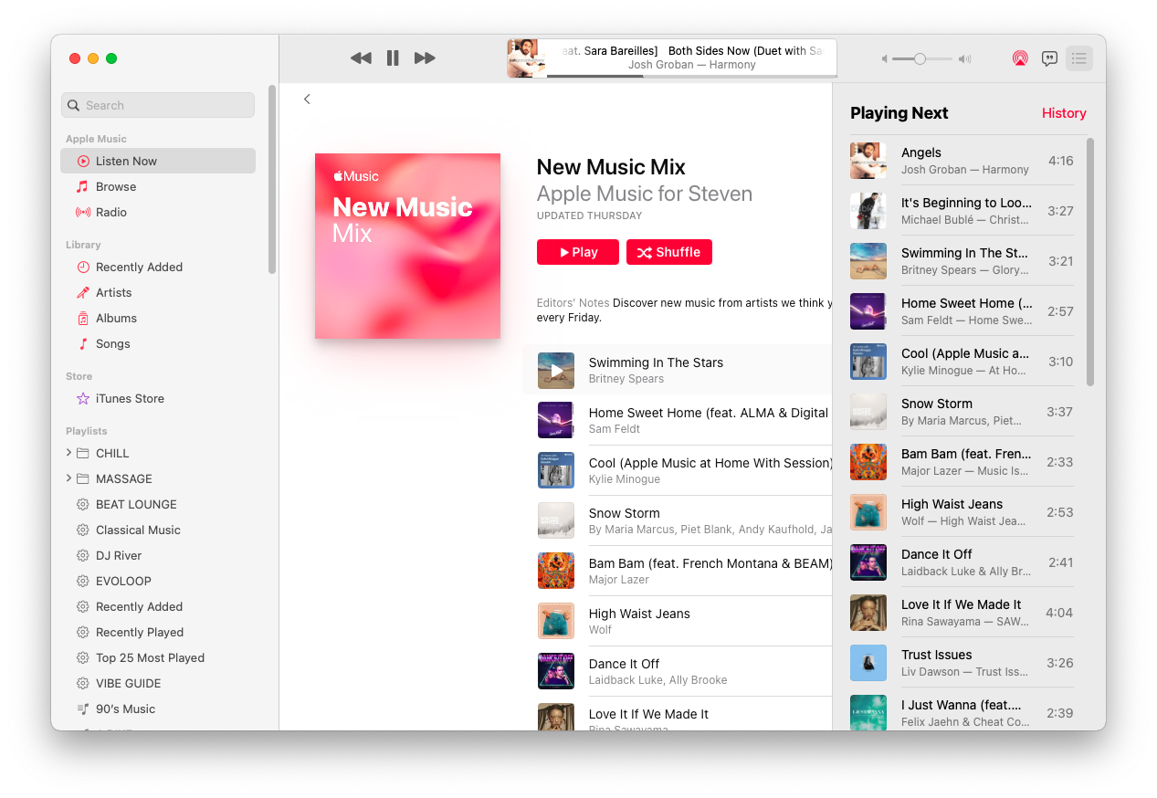 2nd is adding entire album to playing now (Dragged the NEW MUSIC MIX icon up to Josh Grobans photo)