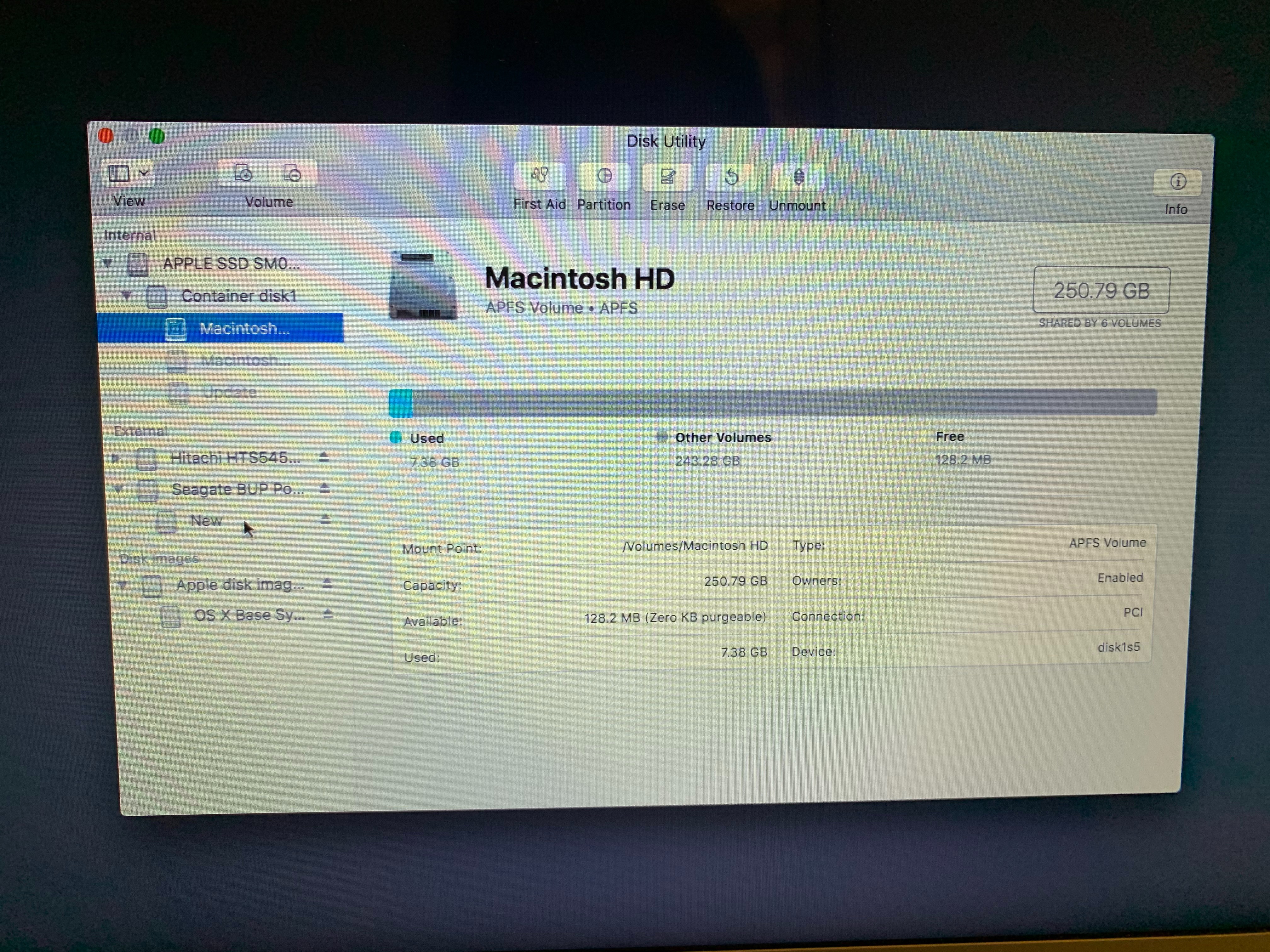 Likewise I make sure the external hard drive is formatted as HFS+ (Mac OS Extended Journaled) and GUID partition map.